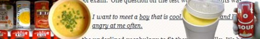 I blink and then stare at the paper cup of corn soup that sits ominously on the desk in front of me. For a moment, I imagine myself balling up Sami’s exam, dipping it in the now cold corn soup and then eating it. I continue to scowl at the cup of corn soup. The next question on the exam reads: