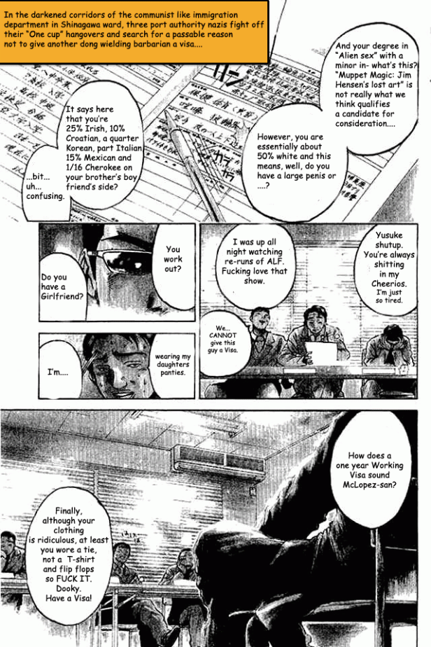 GTO is a famous Japanese manga about a guy that becomes a school teacher for some very suspect motives. Changing things around, I felt compelled to use this vehicle to see if I couldn’t tell the story of “Jerry McLopez: gaijin in Japan”…just to see what happens.