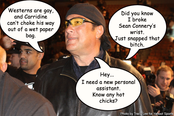 The fact that we used Seagal and his global one man war on bones as our point system was more props to him than anything else. I grew up on Seagal flicks so I’m sitting on his side of the bleachers for sure.