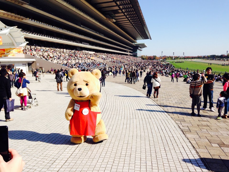 As I walked into the park I noticed a rather large stuffed bear greeting visitors to the giant grand stand that is the Tokyo Fuchu Race Track: